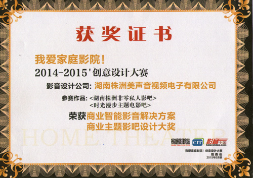 美声家庭影院获奖证书